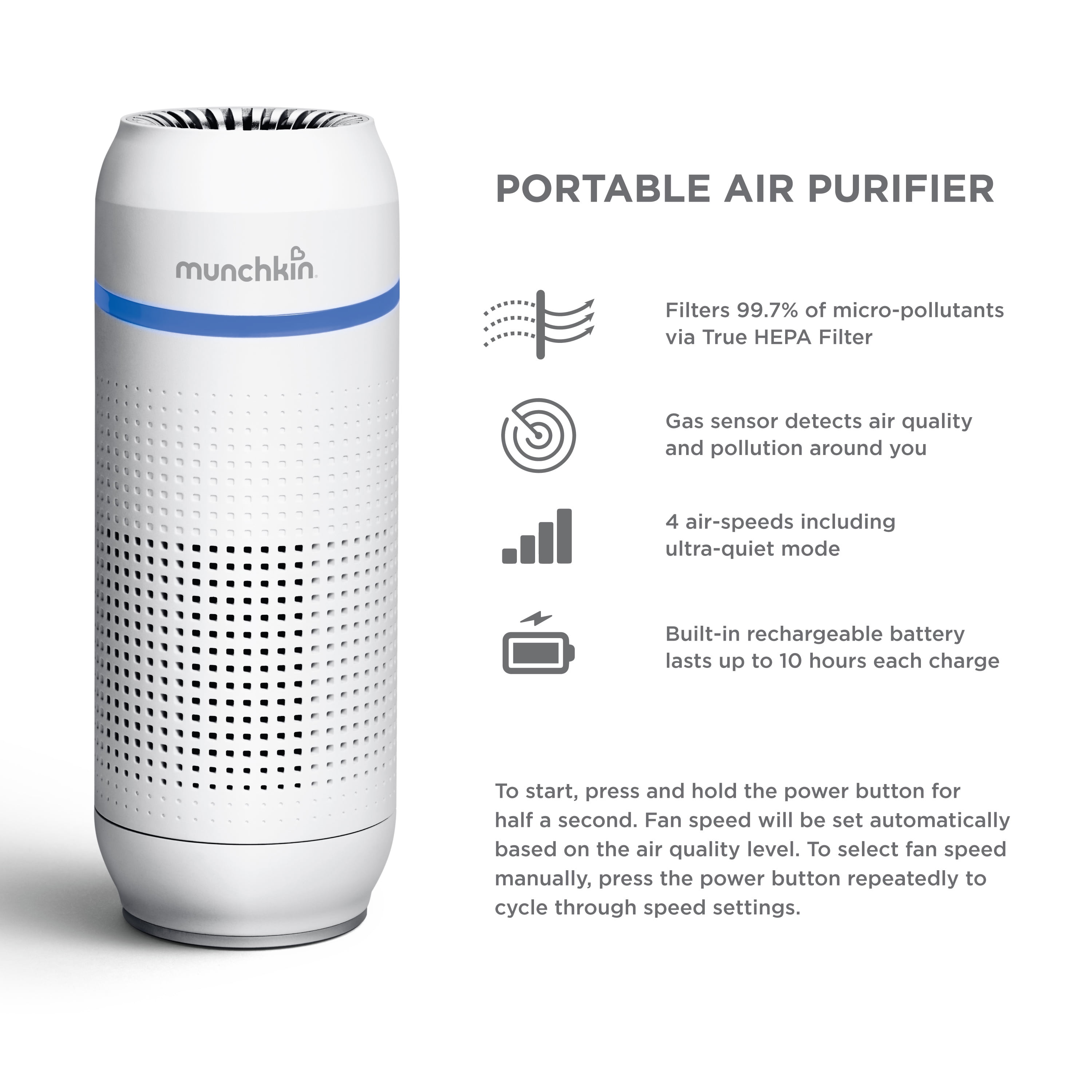 Munchkin Portable Air Purifier 4 Stage True Hepa Filtration System Eliminates 99 7 Of Micro Pollutants 7 Cubic Feet Walmart Com Walmart Com